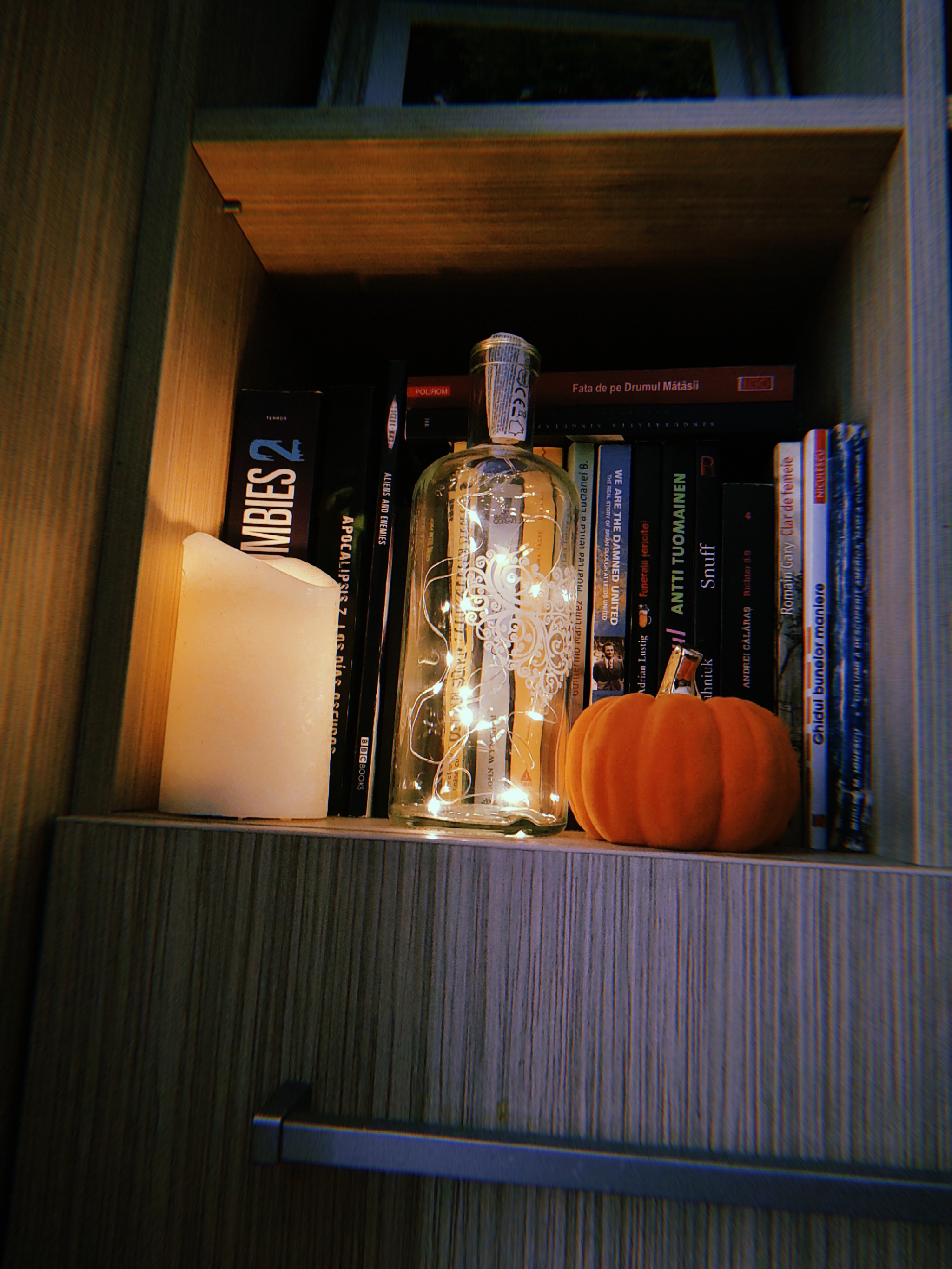Since I like the Halloween and autumn vibes, I also decorated a little around the bookshelves and my home office.